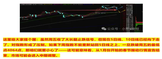 这周市场真的太伤人了!从周一开始就直接崩了,大跌砸懵一群人,虽说后半周稍微反弹了点,也没跌破4000点,但说实话,赚钱的没几个,亏钱效应拉满!好多朋友跟我吐槽,就2月这一周的亏损,直接把1月份甚至近几个月攒的利润全给抹没了,相当于白干一场,说多了都是泪啊!其实这周市场也挺有意思,指数看着是先跌后涨,但板块轮动快得像电风扇,根本抓不住!周一还在炒电网设备、AI应用,周二就切换到光伏、商业航天,周三又换成煤炭、油气,周四轮到消费发力,周五又飘去化工、油气了。每天领涨的板块都不一样,你追哪个,哪个就回调,这种行情下,大家觉得难赚钱,真的太正常了,一点都不怪你们操作差!距离马年春节长假,就剩一周时间了!成交量已经缩到2.1万亿,比之前的峰值直接砍了一半,很明显资金都开始进入假日模式了,但周五晚上美股突然集体大涨,富时A50也涨了1%,一下子又把大家的期待值拉满了:下周能不能借着外盘的利好,来一波红包行情?还是说,市场根本不买账,继续跌跌不休?这应该是大家现在最关心的问题,今天咱们就具体来聊一聊。其实上周周评时我就提醒过,市场有可能会下跌。结果沪指周一就直接击穿了4064点,应验了之前的判断。虽然后半周反弹了,但不管是沪指还是其他几大指数,反弹到5日线就被压回来了,周五也没例外。所以客观说,现在市场就是处于偏弱势的调整状态,别抱有太多幻想,也别盲目抄底。不过周五美股大涨,富时A50也跟着涨,下周一大概率会高开,现在最关键的是,高开之后是高开高走?还是高开低走?给大家划个重点,要是想让红包行情落地,得满足两个条件:第一,几大指数要收出小中阳线,站上各自的10日线之上,就沪指来说,得突破4104点;第二,成交量得放大到2.5万亿以上。如果满足,则大概率走出一波红包行情。反之,突破不了上面说的压力位,那大家就得小心了,市场有可能继续走调整浪,再次回踩4000点,甚至跌破的可能,到时候又是一波亏损。我个人的看法是,目前市场还没摆脱调整的大趋势,大概率会围绕4000-4200点震荡徘徊,真正的大机会,可能要等到春节之后。所以从操作策略来说,就算下周真的有红包行情,也建议先当短线来做,见好就收,千万别贪心,贪心容易被套在高位。再聊聊近期的市场机会,其实就两个明显特征,看懂了就能少踩坑、多赚钱。第一个特征,就是高低切换。最近每天都有不少个股跌停,大家可以去看看,这些跌停的股票,除了少数是基本面出问题的,大多都是前期涨得特别多、特别猛的高位股。而反观周三领涨的煤炭,周四领涨的影视、旅游酒店、食品这些消费股,都是前期没怎么涨、处于低位的板块。这就很明显了:现在的风险,主要集中在高位股上,而低位股,反而藏着不少机会。第二个特征,就是轮动太快,快到让人跟不上。就拿光伏板块来说,前两天还是领涨的香饽饽,周四就直接领跌了,这轮动速度,比电风扇还快。所以我劝大家,现在别整天想着找什么主线板块,没用!重点是踩准节奏,一般来说,某个板块大涨两天,就可以考虑高抛下,等它跌下来后,再考虑进场捡筹码,千万别搞反了,追涨杀跌,只会越亏越多。最近很多朋友被科技、商业航天、有色这几个板块坑惨了吧?不停抄底,不停亏钱,心态都崩了。其实原因很简单:这些板块前面涨得太多太快了,尤其是商业航天和有色,之前都是一波加速主升的行情,一旦加速结束,后面的调整时间不会太短。大家也能看到,近期这些板块偶尔会有反弹,但反弹之后,还是会继续下跌,所以在这种行情下,不管你是抄底,还是抢反弹,都特别容易被套。跟这些板块相反的是,酿酒、旅游、酒店这些消费板块,还有银行、红利股,甚至是交运基建这种大家觉得“没行情”的老登股,因为之前跌得太狠、超跌严重,反而在慢慢走强。就拿酿酒板块来说,上周四直接暴涨9%,这不是散户能拉起来的,现在距离突破长期压力位,仅仅一步之遥,这说明大资金已经开始行动,在尝试风格切换了。所以从交易角度来讲,给大家一些建议,因人而异,大家对号入座:1.操作能力强、能扛风险的朋友:依然可以围绕科技、商业航天、有色这些板块找机会,但一定要踩准节奏,买跌卖涨,把握好止盈止损。别贪心。2.求稳、不想冒风险的朋友:重点关注低位板块,比如大消费(酿酒、旅游、食品)、医药、银行、红利这些方向,这些板块虽然不一定能让你赚大钱,但至少回撤风险小,不用天天提心吊胆的。3.特别求稳的朋友:可以配置一些指数,这样至少能不跑输大盘,总比在个股里来回踩坑、追涨杀跌,最后亏得一塌糊涂,强太多了!