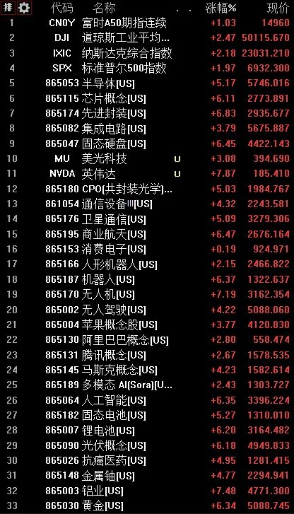 铝业、黄金等,涨幅都在5%以上,