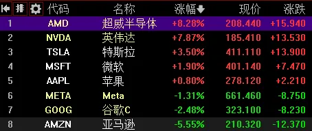 周五美股部分科技股大涨,英伟达大涨7.8%、AMD涨8%,费城半导体指数狂涨6.3%;