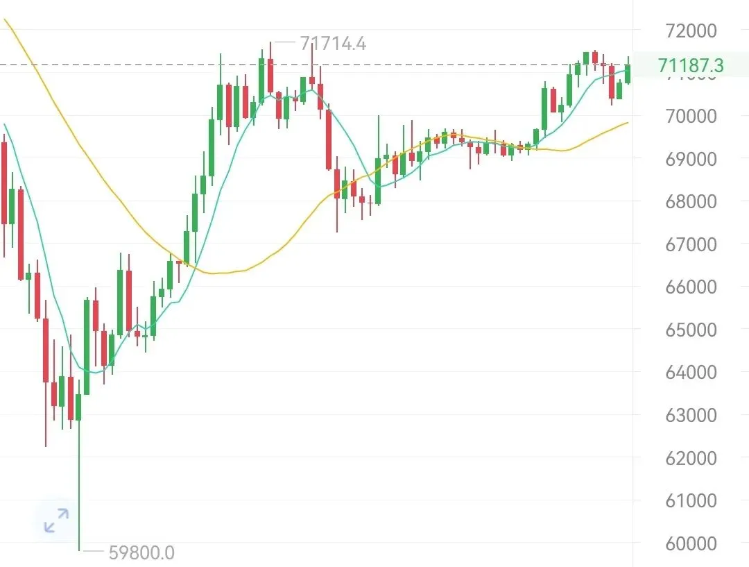 比特币70500附近哆,目标看74000
