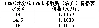 2.门前“带票”价格:新粮14%<水分≤15%三等及以上折标玉米价格为2240元/吨;15%<水分≤38%折标玉米价格为2200元/吨;该价格为筛混不返杂价格;需提供发票(9%税率);发票入账后10个工作日内付款。