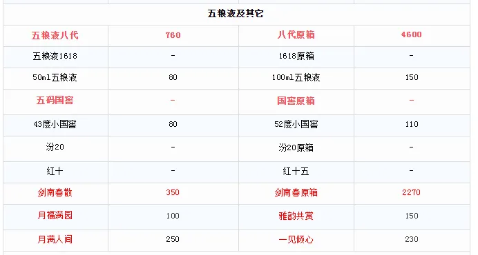 回收价:散瓶价格浮动0~50左右,原箱价格浮动0~150左右每个地方回收价格会略不同