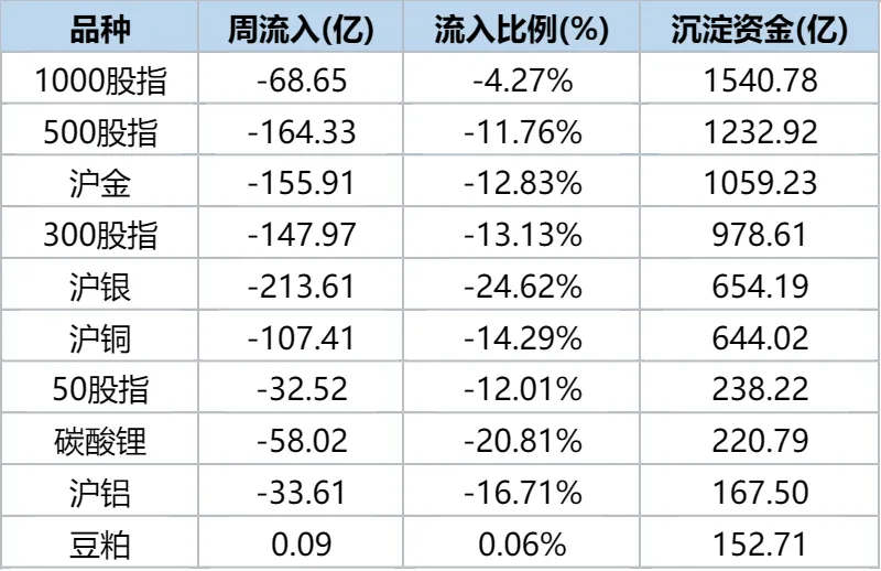 每周统计,包括沉淀资金、涨幅、增仓比、期现比、价格水位五个排名表,根据周五的最新数据做统计;每周一发布,遇节假日顺延。