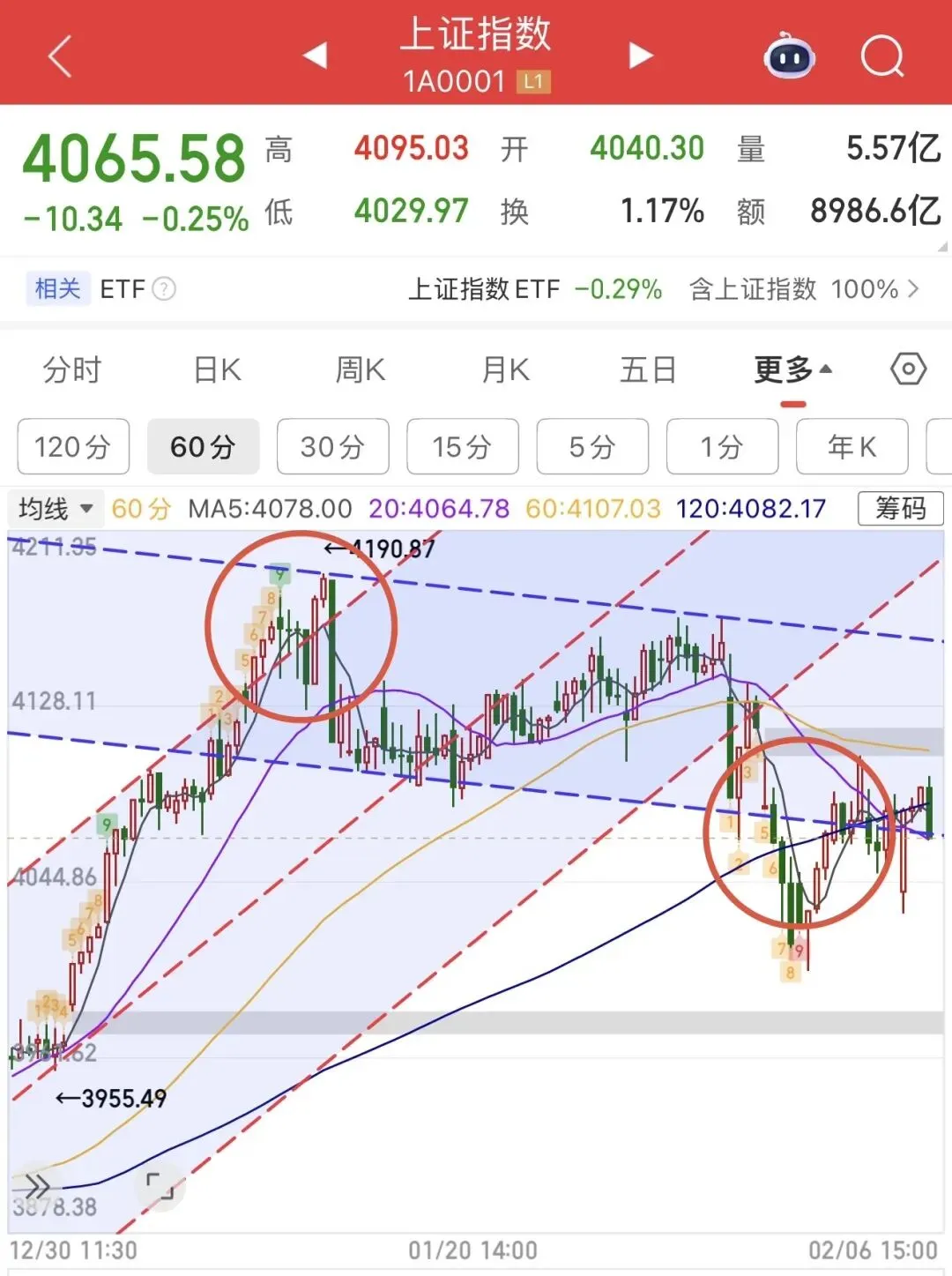 各大指数目前都有在60天线止跌的迹象,再差一点也就是去120天线,距离并不远,所以就没必要再做减仓,毕竟从几轮牛市的演绎来看,120天线都是生命线,没有破过的历史。