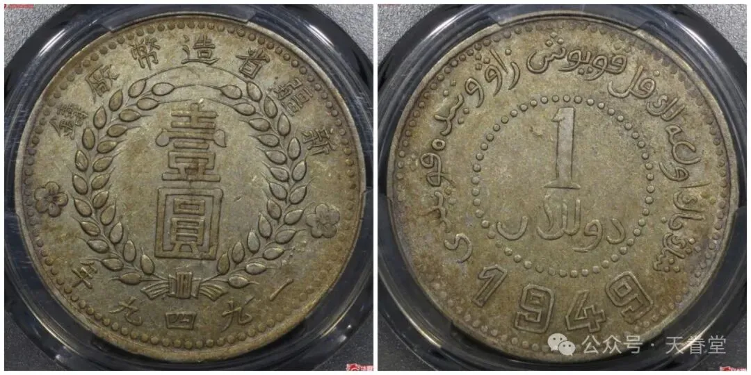 1949年新疆造币厂壹圆(双49名誉品)PCGS AU50 华夏古泉104500元