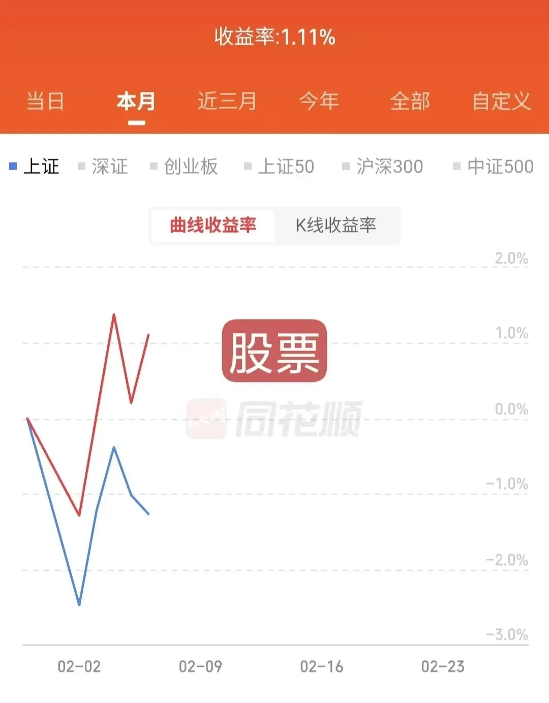 2月:股票收益率1.11%,基金收益率-5.77%