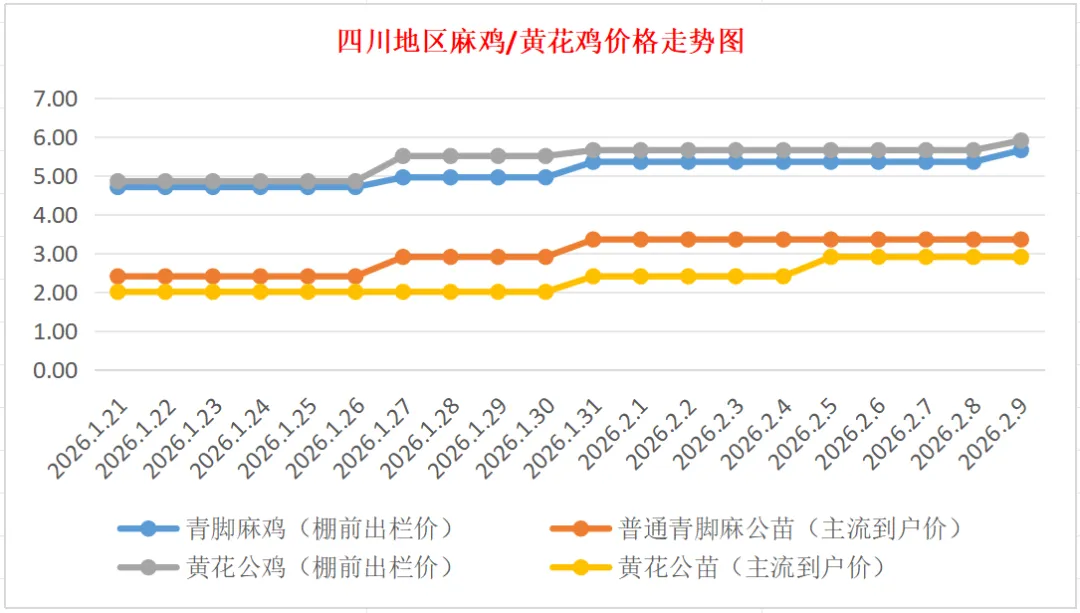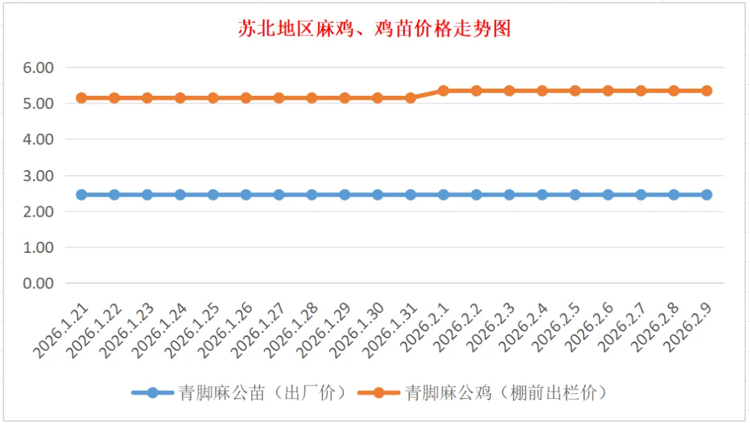 品牌青脚麻公苗(多品种快大型):价格稳定,到户价4.20元/羽,稳。