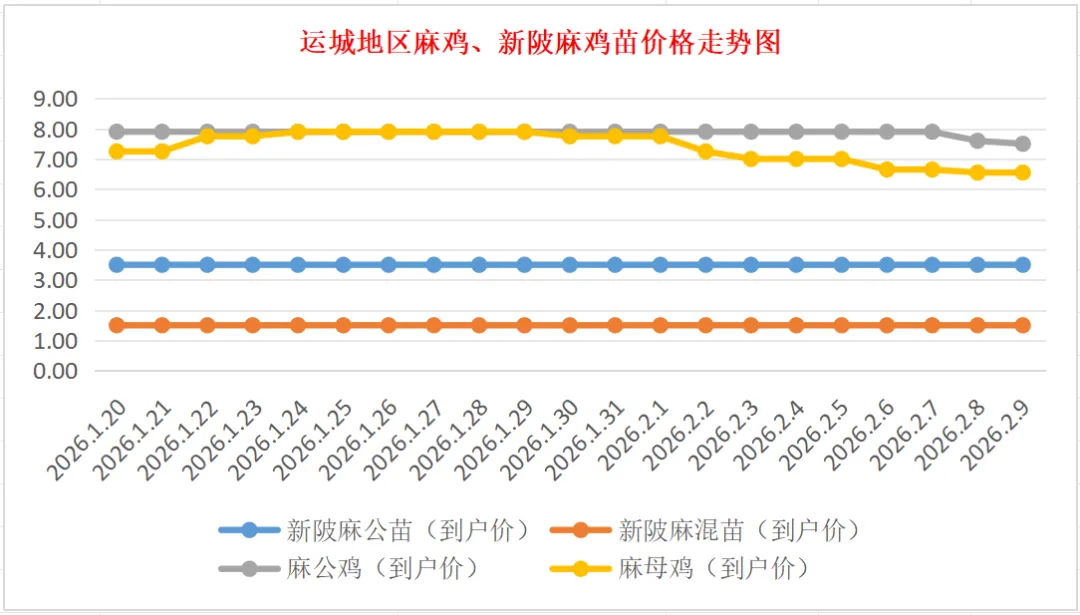 普通新陂麻:价格稳定,到户价公苗3.50元/羽,稳。