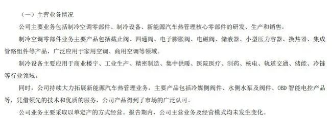 盾安环境是一家做空调零部件、制冷设备部件和新能源汽车热管理部件业务,而空调零部件是它最大一块业务,它的大股东是格力,格力的订单基本被它所绑定,但这也有坏的一方面,其他厂商由于因为它被格力所控股,也会将它排除出供应商。