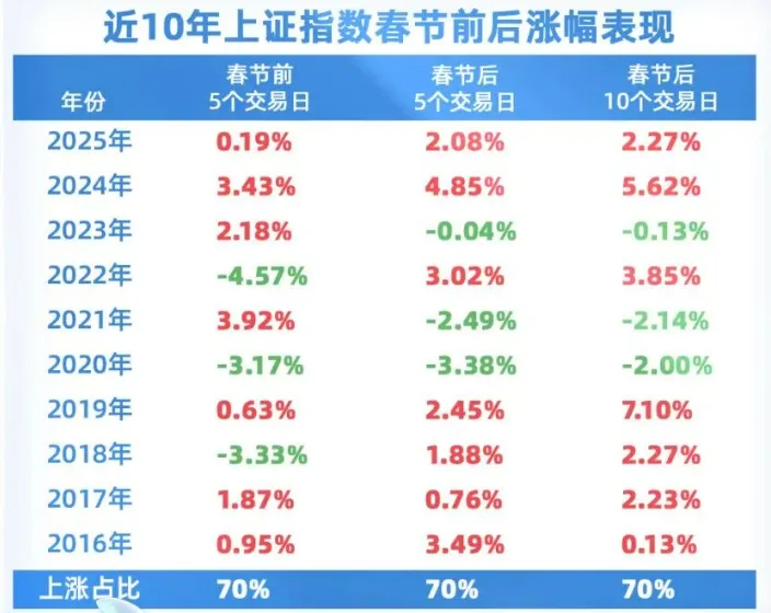 另外说道持股过节和持币过节的问题,回顾近10年春节前后走势,尤其是春节后,大盘上涨概率在7成,所以节前没必要大幅减仓,股海建议是,如果节前指数和你的持股大涨,可以适当移仓到滞涨的方向;如果节前指数没大涨和你的持股没涨,则耐心持股待涨即可。总体8成仓位。