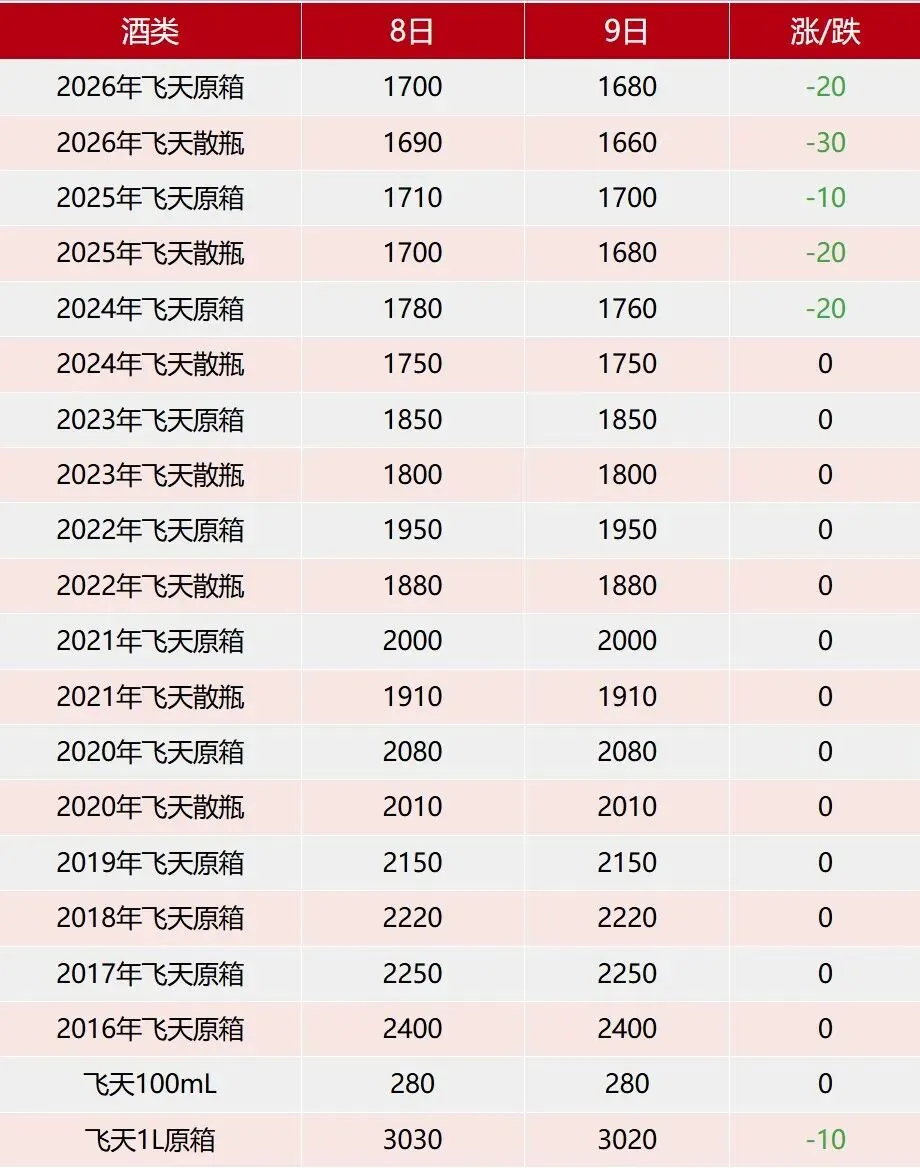 飞天大跌.2月9日茅台行情价.