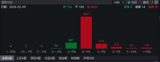 第三:赚钱效应回归,今天两市超4600家股票上涨,涨停家数99家,近百股涨停,也说明市场的强势本质!