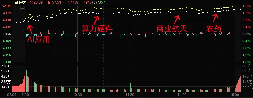 按照惯例,长假前的行情一般都不好。924就打破了这种惯例,在国庆前提前启动行情。今年元旦也是,12月底不声不响的拉了几个小阳线,元旦后开始加速。所以对于即将到来的春节长假,虽然短线今天赚钱效应一般般,还是打地鼠的感觉,但是大盘指数不声不响的五连阳。盘面来看,今天情绪是蛮强的,盘前的seedance2.0引爆了游戏短剧板块,虽然盘中板块还是出现轮动,但是没有上周那么卷了,当然市场放量是一方面原因,放量之后市场的容错率高了,拉升过程中没有那么明显的拉B砸A;另一方面自然就是节前最后一周,部分资金开始博弈节前红包行情。总得来说,指数比短线题材强度要高。节前指数搭台,节后题材唱戏可能性很大。看看一些非主流预期差板块(化工、消费之类的)。今日段子: