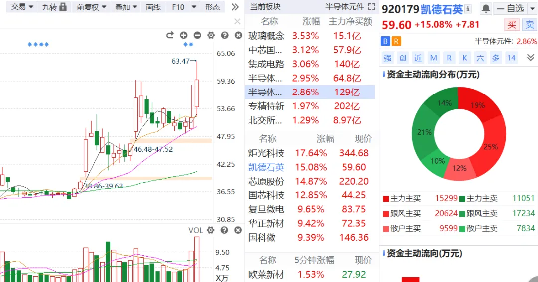 1. 凯德石英:半导体板块强势,叠加拟转让给江丰电子的利好,布局博弈