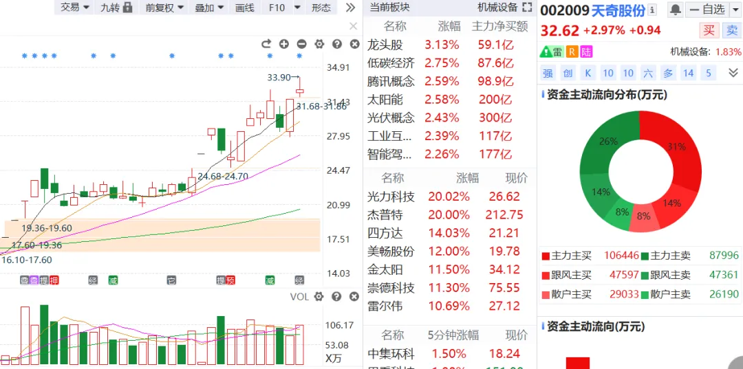 5. 天奇股份:春晚机器人概念+光伏概念,今日十字星企稳,短线博弈机会