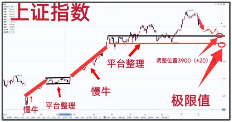 若4000点上方指数与成交量同步放大,场外资金将呈现指数级别进场节奏,盘面将脱离可控状态,因此1月14日高点后的调整周期必然拉长。