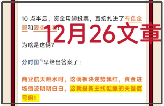 12月26日文章研判商业航天部分资金已流入有色金属板块;
