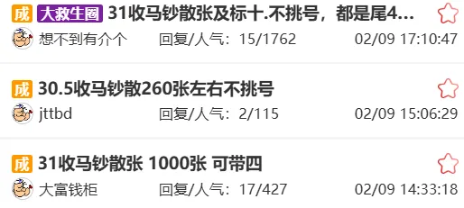 点击下方图片,进入搜钱一尘盯盘助手,查一尘网实时行情,查真实买卖贴、成交贴、更多马钞靓号行情!支持手机发帖回帖、一键传高清图,挂救生圈、评分。