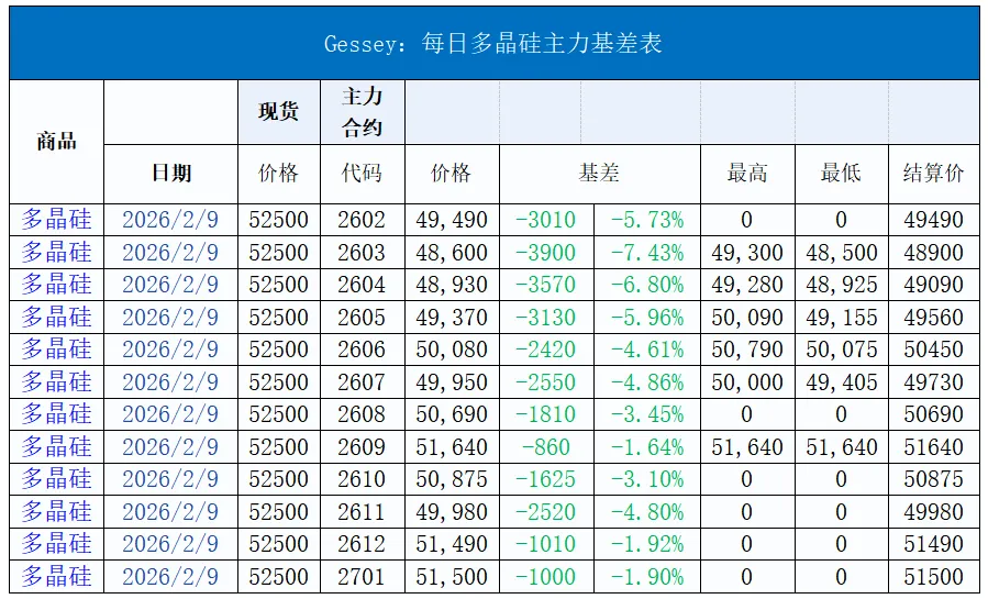 今日硅料价格整体维稳,N型料主流价格在48-55元/公斤,均价52.5元/公斤。N型颗粒硅主流价格在47-51元/公斤,均价50元/公斤。国产复投特级硅料主流价格在36-44元/公斤,均价43.5元/公斤,国产致密特级硅料主流价格在35-43元/公斤,均价42.5元/公斤。全球多晶硅料主流价格在19-22元/公斤,均价20元/公斤。
