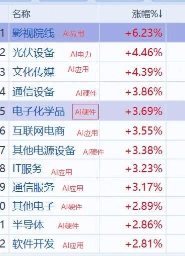 所有的逻辑都是围绕人工智能,由于阿里、字节跳动、腾讯当前都在重金砸向自己的应用APP,AI应用是今天表现最好的,因为当前催化足够,其次位置不高