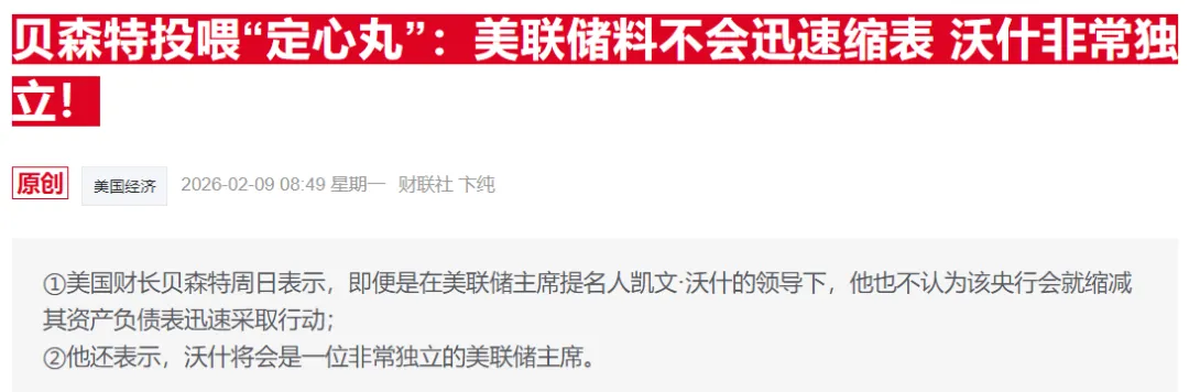另外,今早美国方面还传出一条消息:贝森特称美联储料不会迅速缩表!