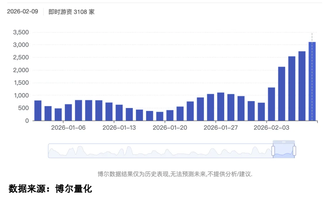 今天市场呈现一边倒的态势,而今天「做多主导」也是创了阶段新高,不过由于上周五的时候,做多行为还很克制,所以今天首次做多的情况占据主导地位,这意味着今天情绪型做多较多,情绪做多说明今天的资金其实有强烈向上的意愿,容易受到外界因素的影响。