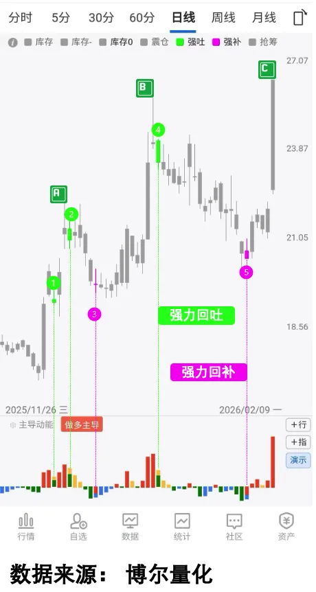 博尔系统的核心价值,就是用数据还原真相:通过「「强力回吐」」「「强力回补」」这些数据,帮你直接「看透」资金的动作——