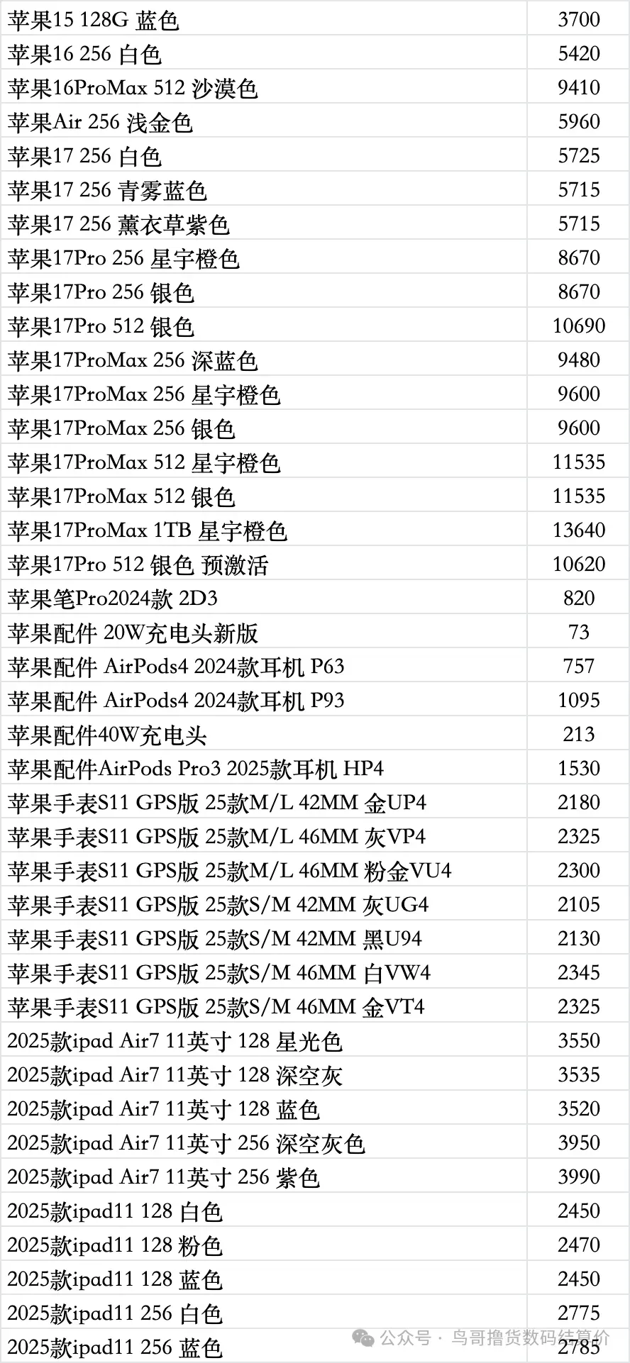 | 鸟哥收货iphone/ipad/手表系列结算价(前一天的结算价) |
