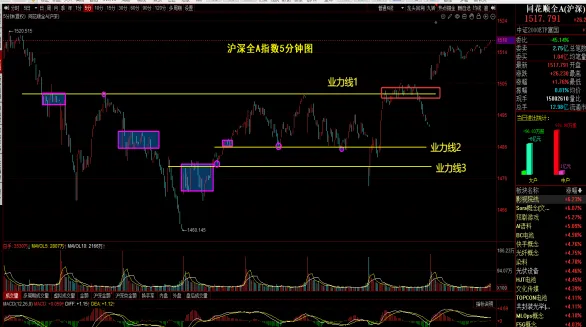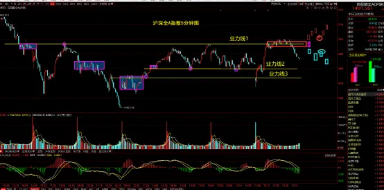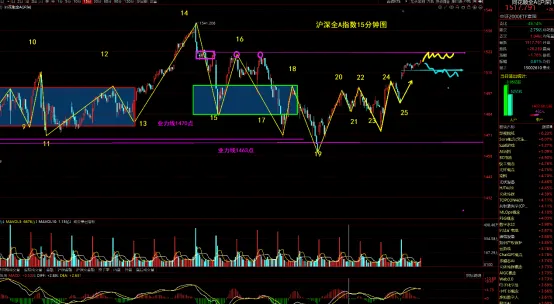 再来说一下明天的走势应对,明天的图我们又要切换到沪深全A指数的15分钟周期上了,见下图: