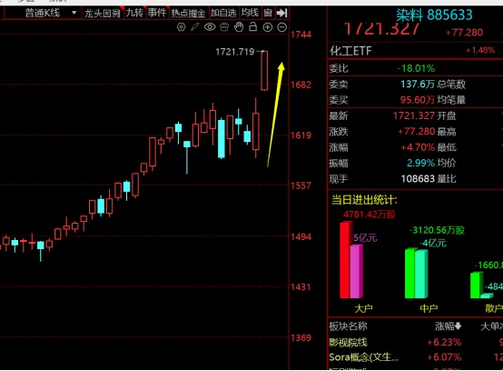 化工方向说了一段时间了,近期是染料方向涨价,化工方向大家关注涨价线即可,见下图: