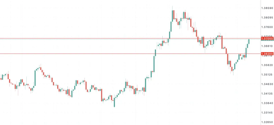 从4小时周期技术指标观察,英镑兑美元昨日成功突破至布林带中轨与上轨之间的强势运行区间,汇价整体走势已初步转向多头强势格局。当前布林带通道开口呈收窄态势,反映市场短期波动率有所回落,若通道开口进一步收缩,需警惕汇价后续进入区间震荡整理阶段。其中布林带上轨在1.3690附近形成短线动态阻力,中轨1.3600位置构成短线多空关键分界线,下轨1.3520区域则为汇价提供短线动态支撑。动能指标层面,14期相对强弱指数(RSI)从30附近的超卖区域强势反弹至60-70的强势区间,反映市场多头动能已得到显著修复,上行动能正持续积聚增强。从4小时周期技术结构分析,英镑兑美元昨日有效突破1.3620区域水平位后,正式确立上升趋势结构。若后续反弹动能持续释放,多头有望率先突破1.3700短线阻力,进一步上看1.3750乃至更高目标位。下行方向来看,汇价短线支撑位于1.3620区域,一旦该区域水平失守,空头测试目标或将下探1.3580及更低位置。