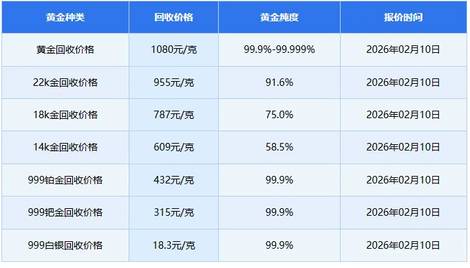 黄金首饰回收价格查询今日