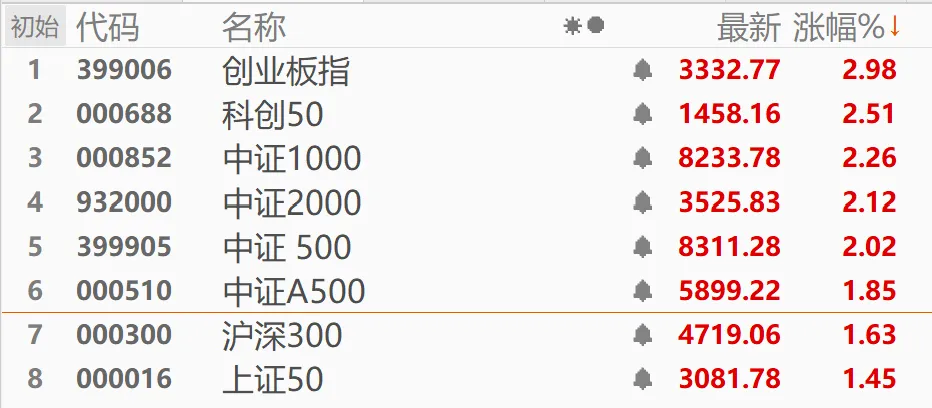 昨天高开后大盘还是犹豫了一下,最终选择了高走。国证A指收涨1.9%,成交2.25万亿,仅比上周五放量1100亿。这么点量能收出中阳线不容易,说明筹码开始稳固了,涨这么多,不是因为买盘多,而是因为卖盘少,持股的不愿卖了,这当然是好事。
