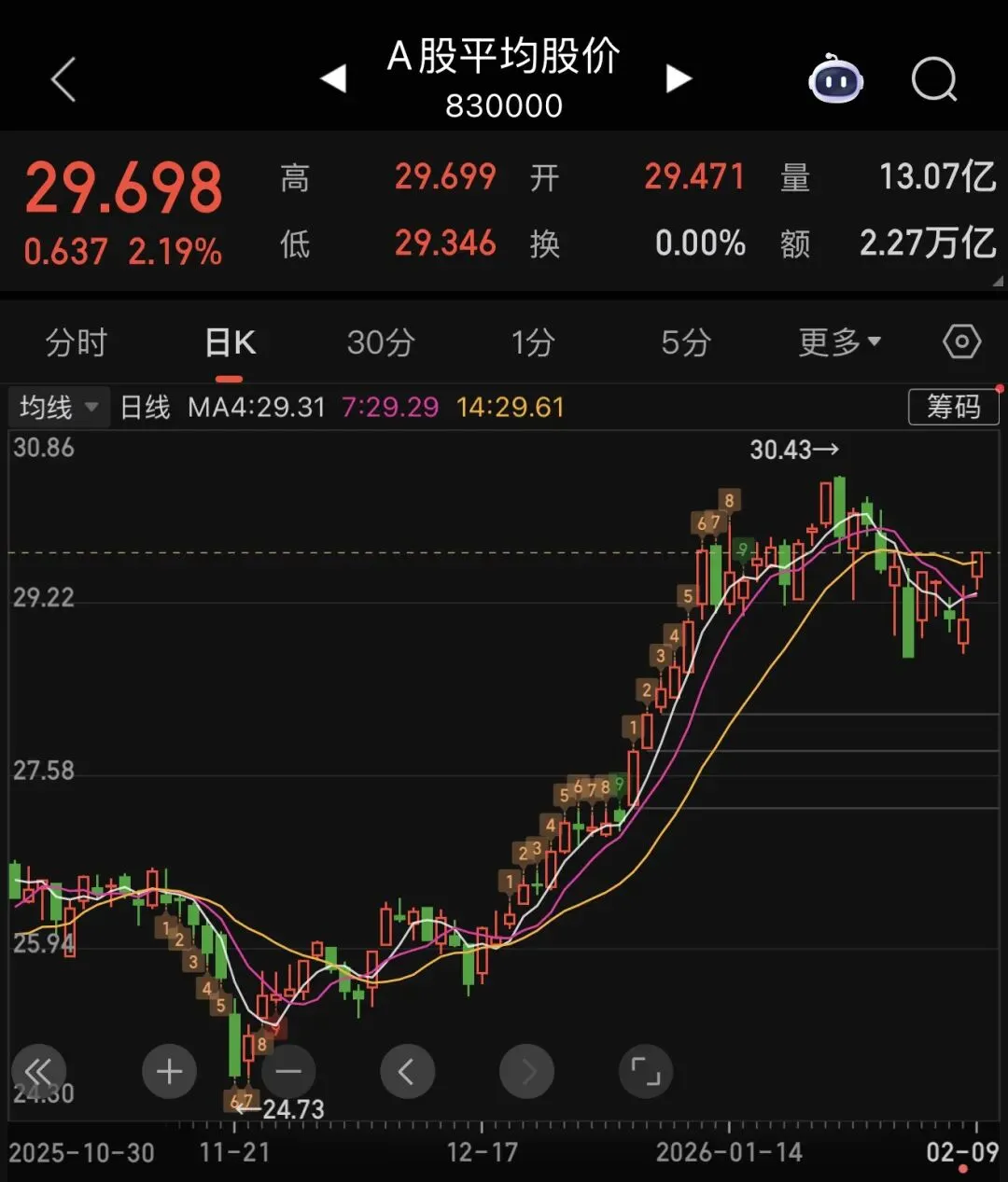 A 股平均股价一如预期,开盘就直接高开,消化完常规的砸盘党之后继续新高,各大指数这里也正如昨天所预期那样,创业板和科创 50 反弹幅度最大,除此之外总体上小票反弹幅度较权重大票会大一点。