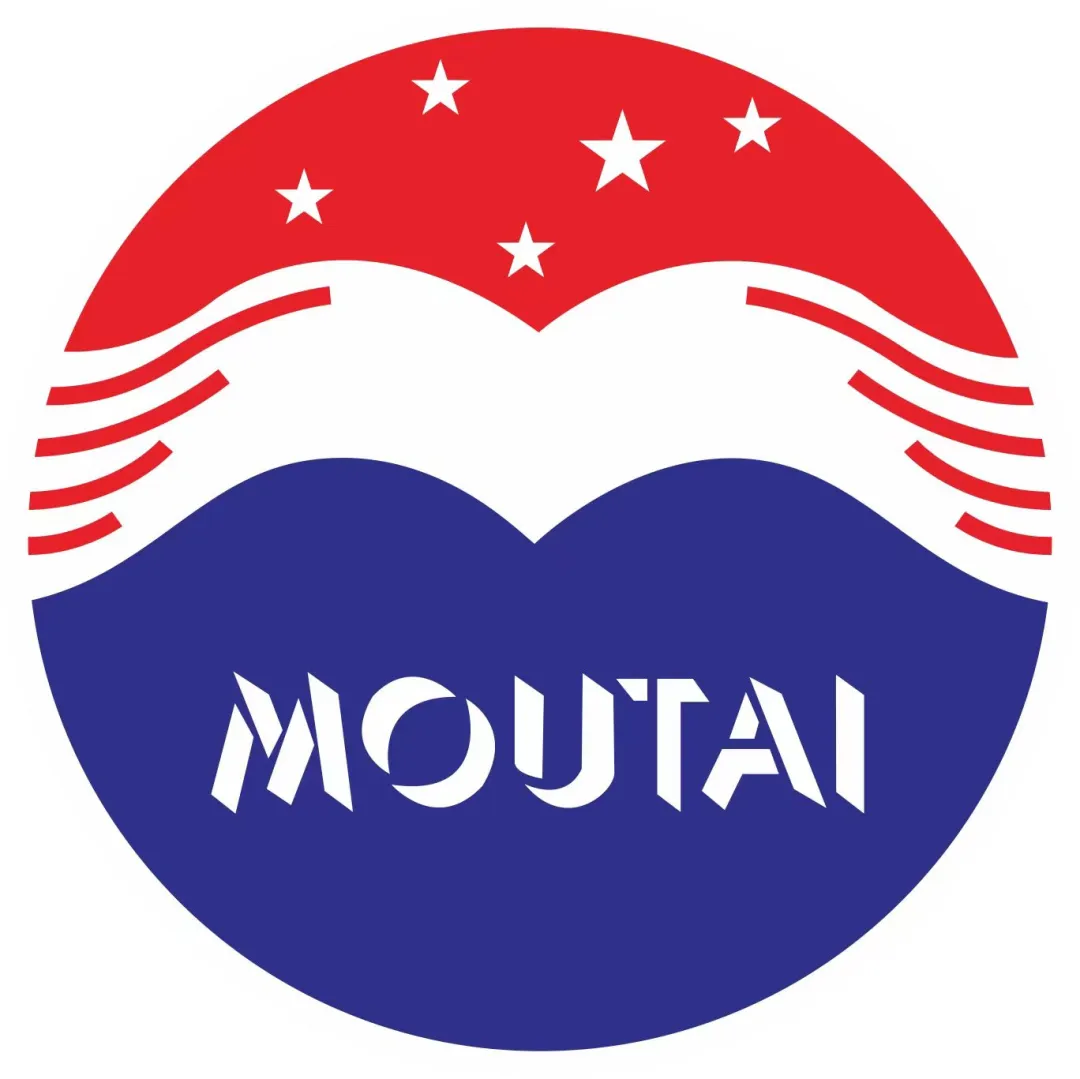 顺着色彩构图向上延伸,目光自然落于门面中央正上方的茅台LOGO:红蓝两色对比鲜明、反白成抽象鹰形,既象征企业如雄鹰展翅腾飞,也隐喻股份公司英文缩写“M”;红色代表开拓进取的精神,五星彰显民族品牌荣誉,白色似翻开的书本,承载茅台厚重文化,八根流动线条象征赤水河及其神秘、独特、无法复制的生态环境,蓝色海洋则寓意中国茅台香飘世界。