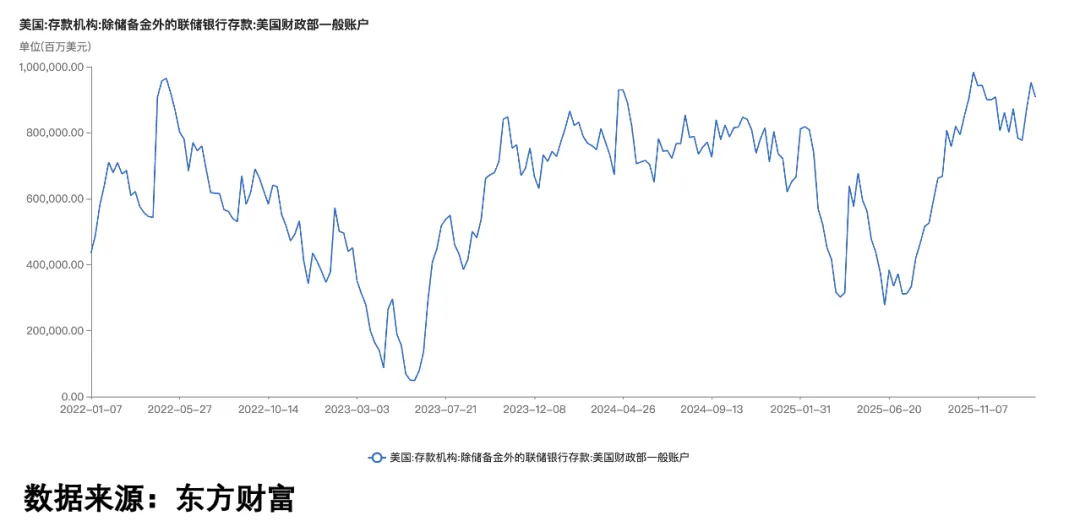 要回答这个问题,就要回到先前鲍师傅那次扩表的谈话,为什么美联储要扩表,因为美国财政部不肯发钱,上次停摆之后,美国财政部的一般账户一直维持高位,理论上应该降下来了,但始终没有,那就说明老美缺钱,缺钱他要满足庞大的开支,就会收紧银根,这时候只有美联储出来兜底了,这就是鲍师傅扩表的原因。