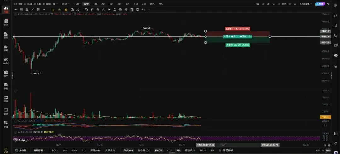 大饼带量突破70392右侧追多,69926带量跌破反抽无法收回右侧追空,带好止损。