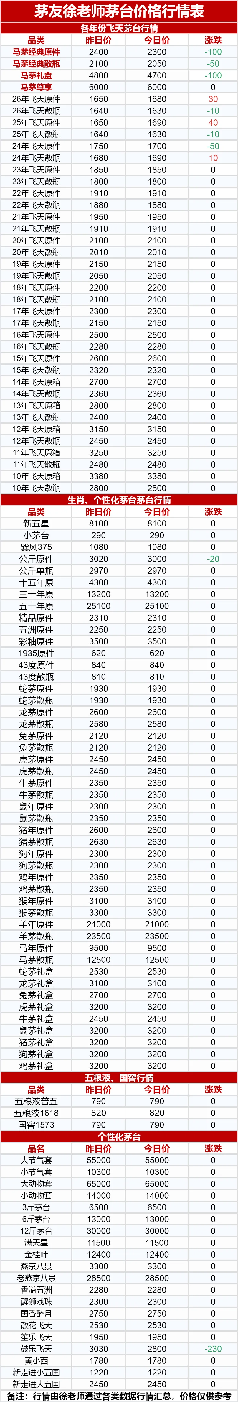 行情价:本公众号发布的价格是行情价格,是全国酒商调该品类茅台的价格,是零售价和回收价的基准价格。