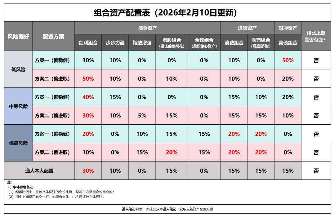 进攻资产,消费组合,2月3日起加大补仓力度。