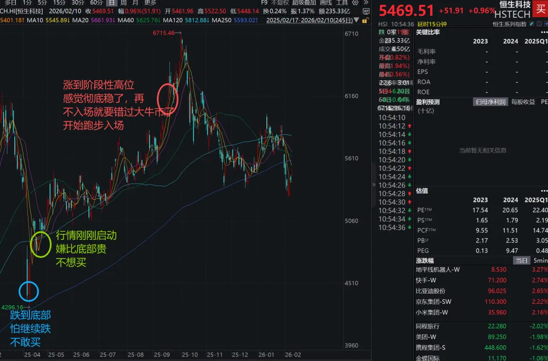 (3)涨到阶段性高位,投资机会最差,风险最大的时候