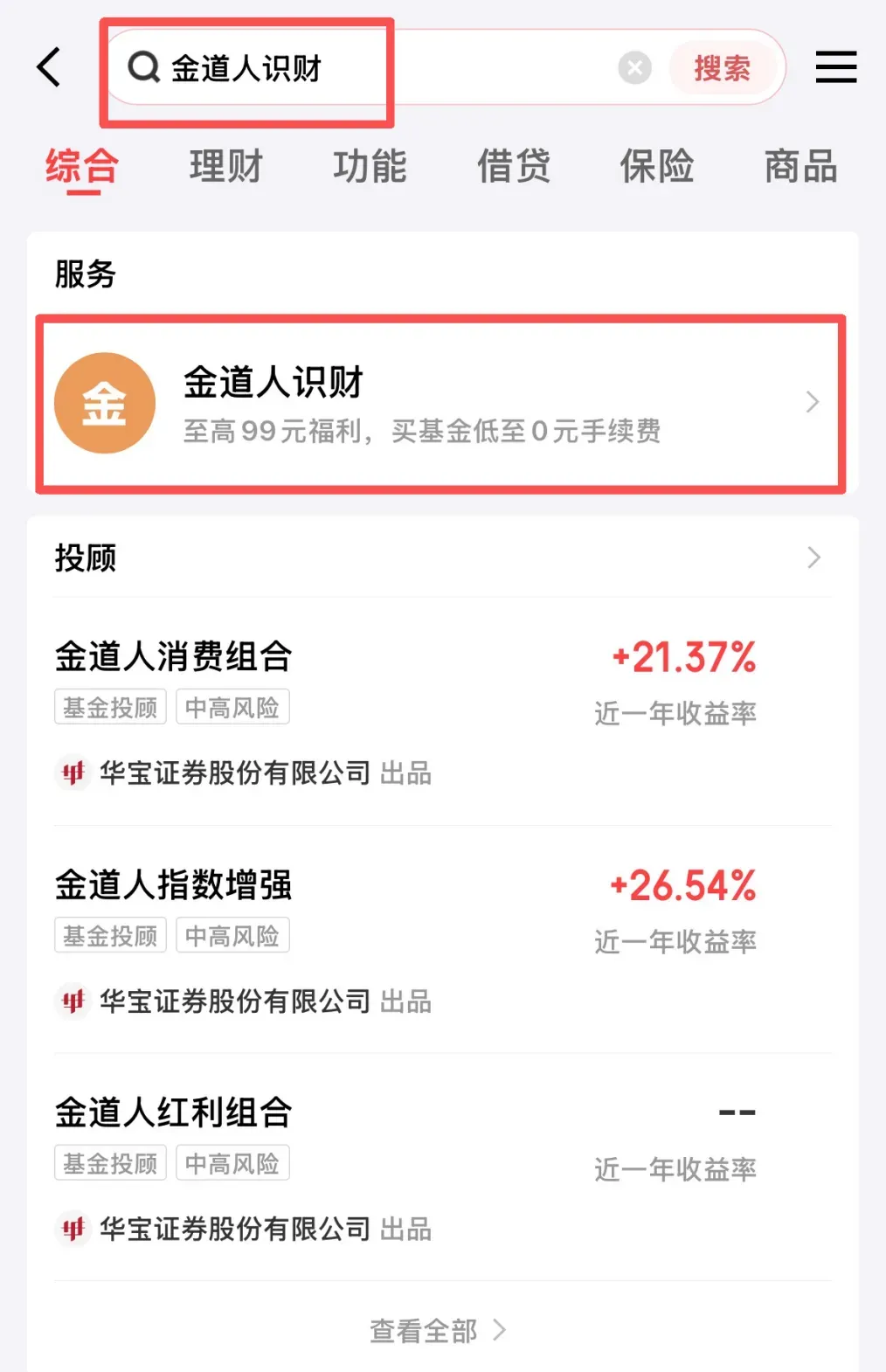 比如想跟投红利组合,就搜索“金道人红利组合”,