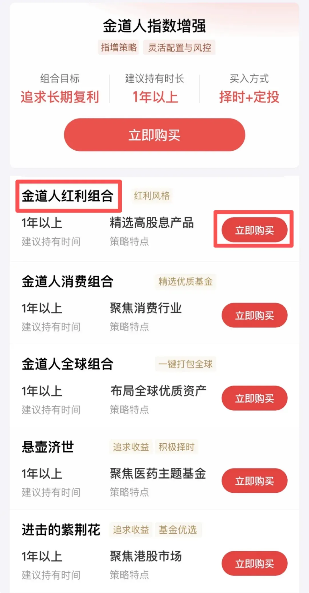 比如想跟投红利组合,就找到“金道人红利组合”,