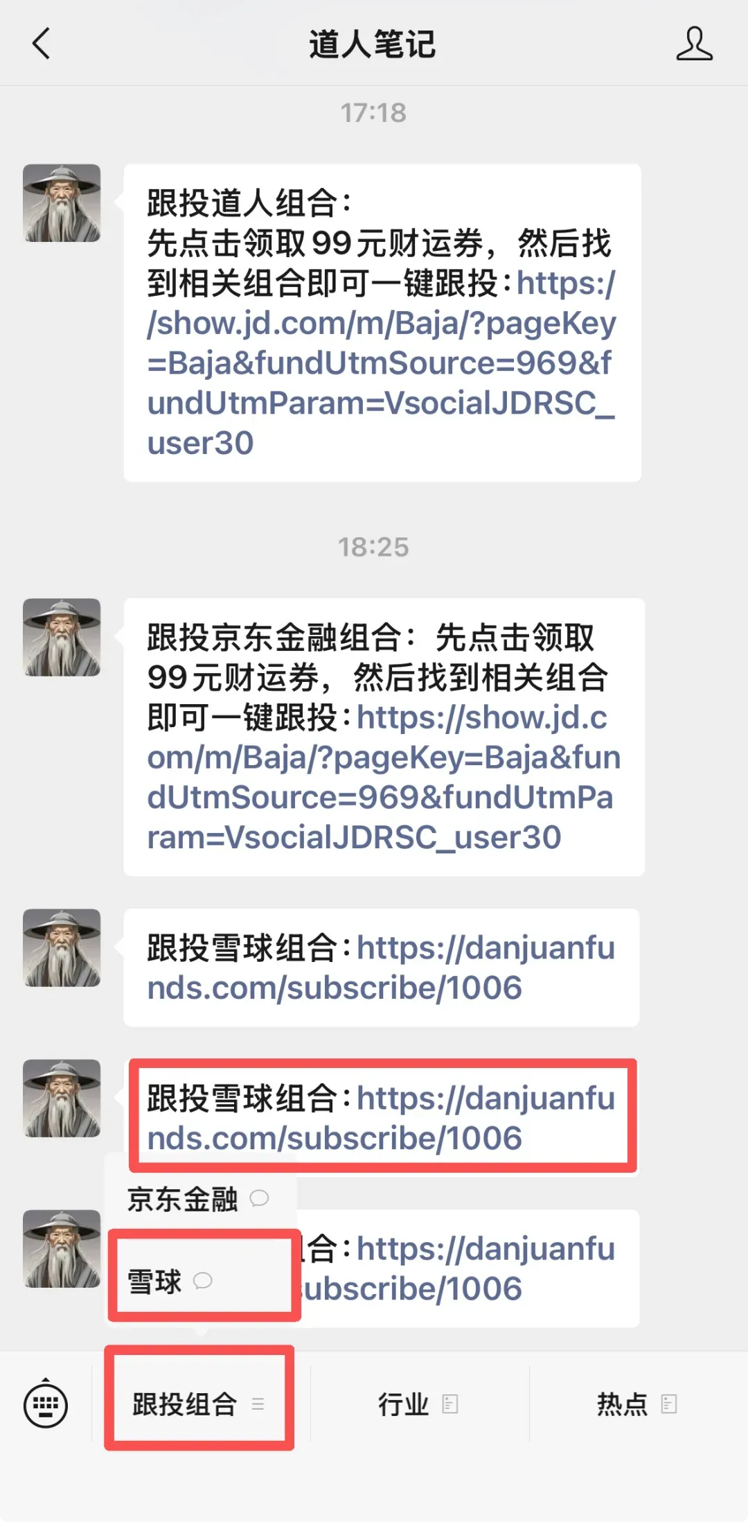 关注小号“道人笔记”,公众号菜单栏点击“跟投组合”,