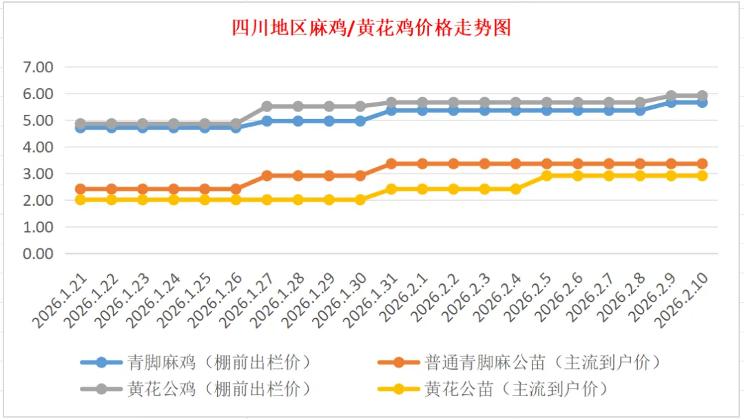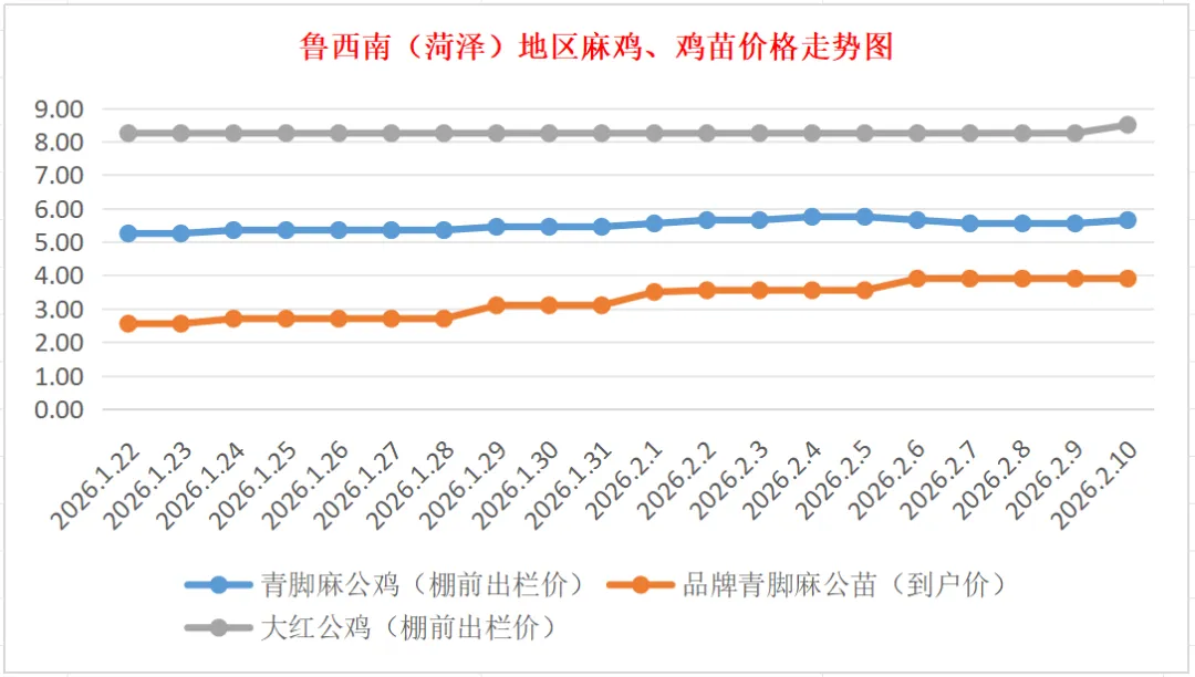 品牌青脚麻公苗(多品种快大型):价格稳定,到户价4.20元/羽,稳。