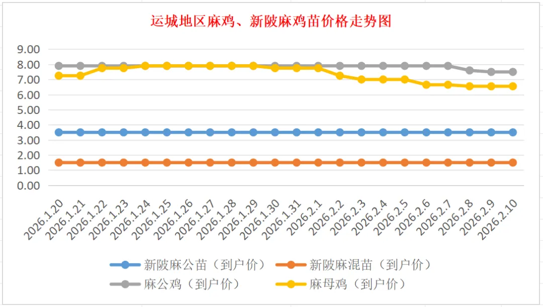 普通新陂麻:价格稳定,到户价公苗3.50元/羽,稳。