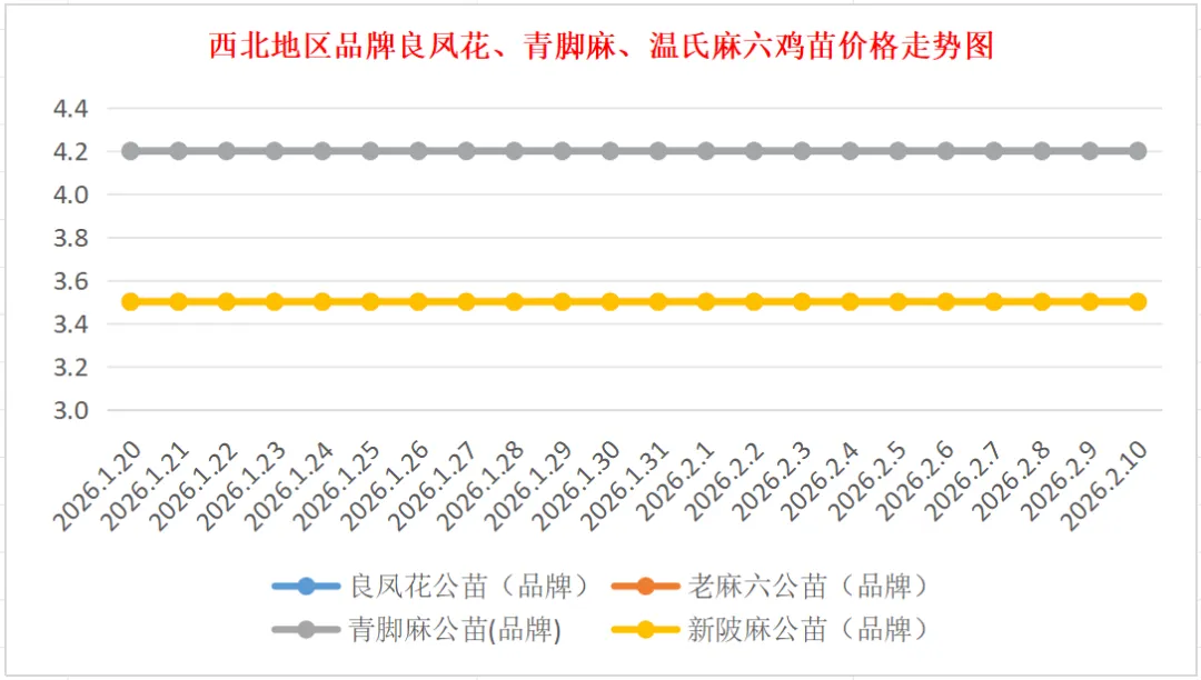品牌新陂麻:价格稳定,到户价公苗4.00元/羽,稳。