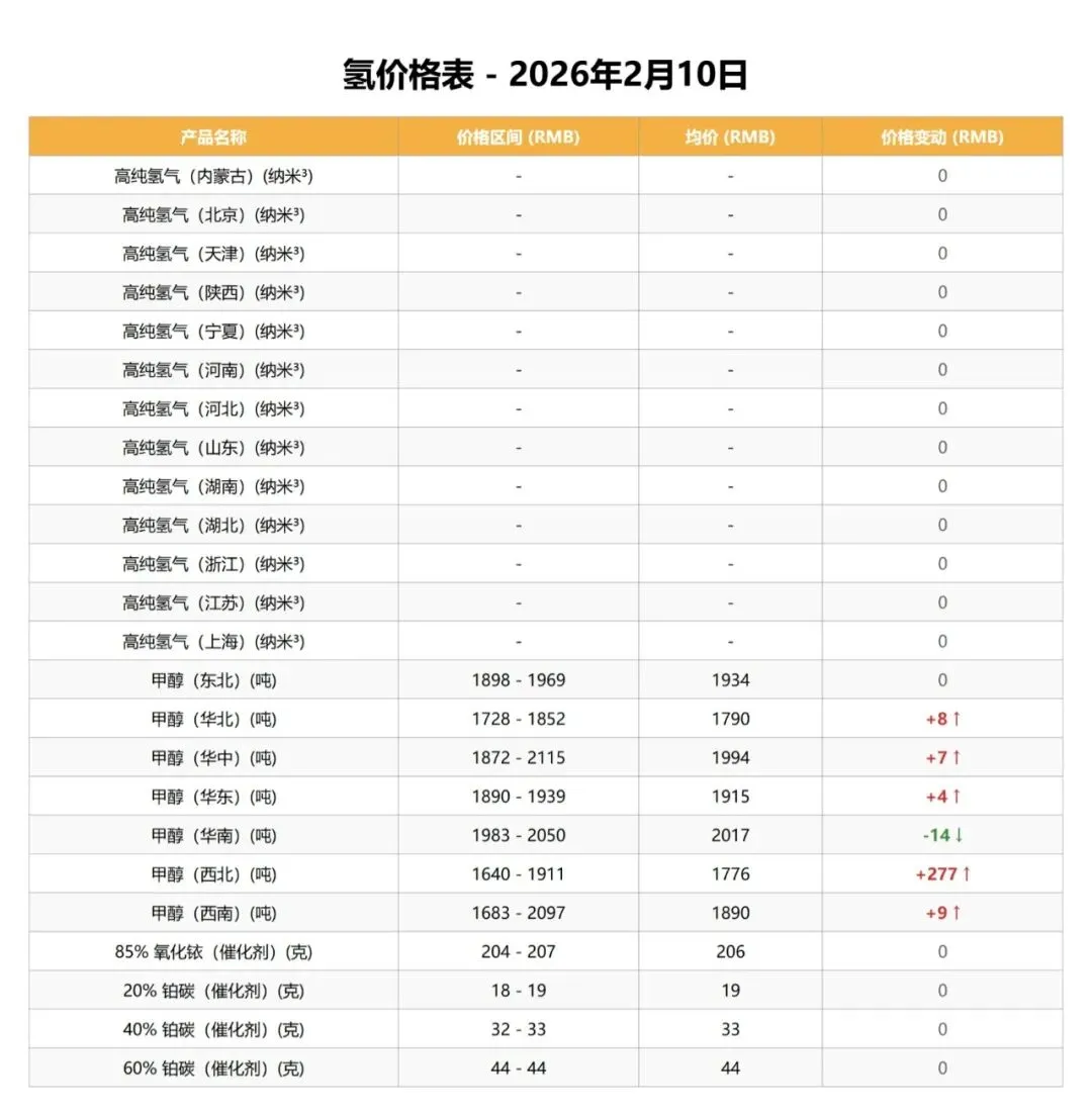 今日高纯氢气市场因价格缺失而无法观察变动。甲醇市场价格普遍上涨,除华南地区价格微降外,其他多数地区均有小幅上涨,其中西北地区涨幅明显。催化剂产品价格保持稳定。