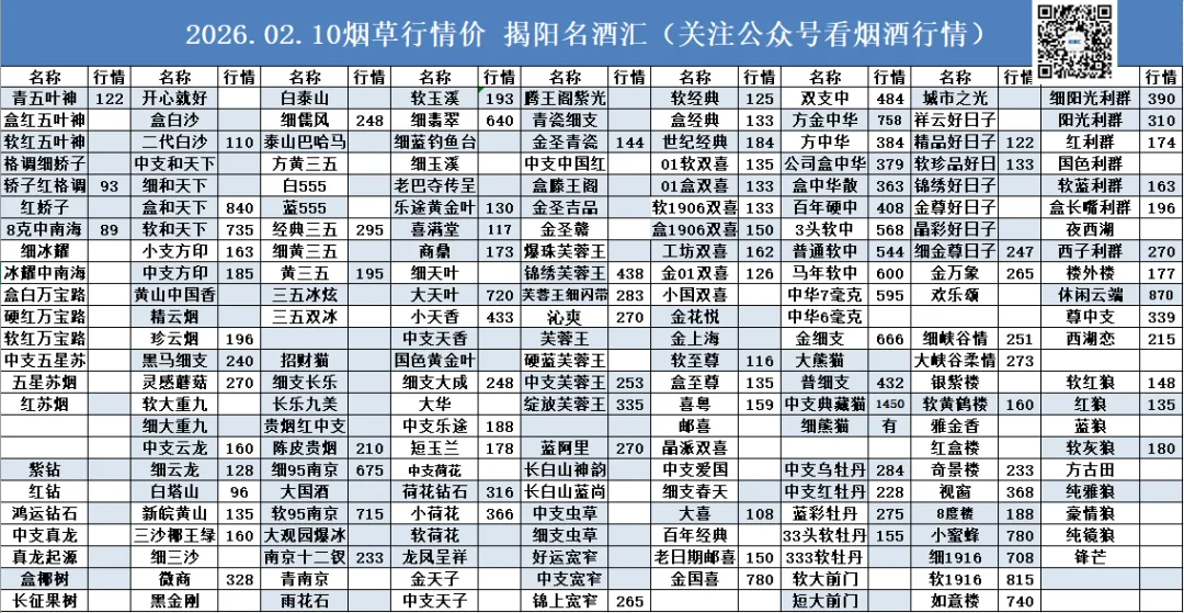 >名酒汇02.10行情报价