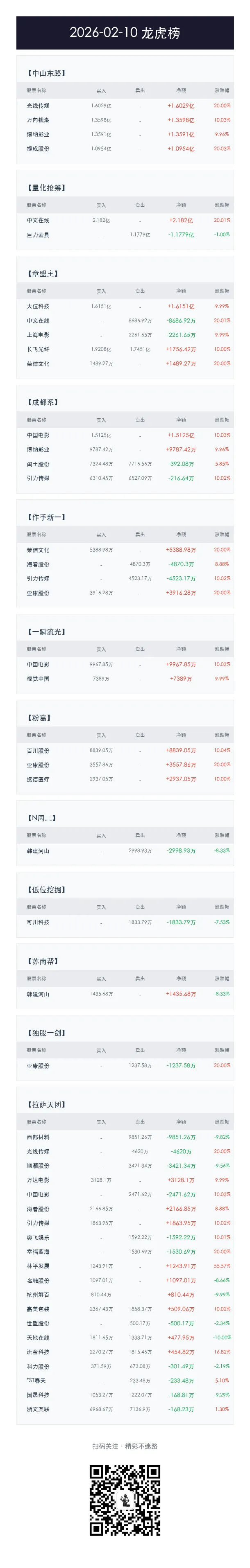 2026年2月10日 A股行情复盘 & 游资龙虎榜