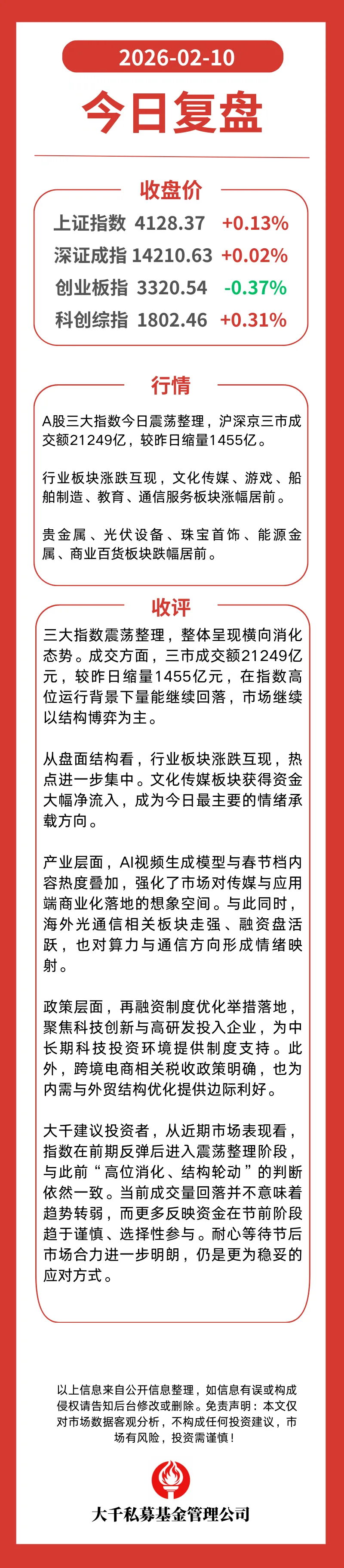 2026年2月10日 A股行情复盘 & 游资龙虎榜